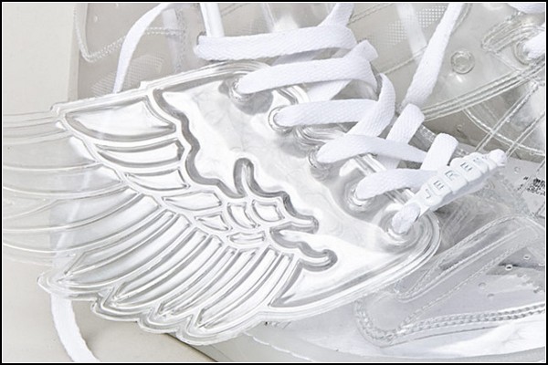 Популярный «летящий» фасон имеет уже около 10 модификаций. Одной из последних является модель“Clear”. В отличие от собратьев, эта пара выполнена из 100% пластика. Хотя создатели обещают, что креативные кроссовки будут не менее комфортны, чем их кожаные «оригиналы», пока в это верится с трудом. Точно сказать можно одно: если у вас хватит смелости обуть такой шедевр, остаться незамеченным определённо не получится.