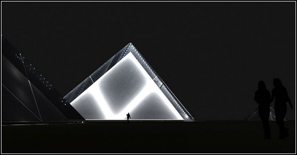 Комплекс Lunar Cubit задуман еще и как огромная световая инсталляция, запрограммированная на то, чтобы повторять фазы луны. Восемь пирамид, расположенных вокруг главной, королевской пирамиды, символизируют восемь фаз ночного светила. И, соответственно, в первую фазу будет светиться только центральная пирамида, во-вторую, она, один из ее «спутников» и края соседних двух пирамидок, а в последнюю, восьмую, все девять пирамид одновременно.