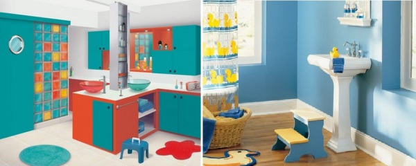 Детская ванная, в отличие от остальных помещений в доме, не должна «бояться» многообразия ярких и чистых цветов и выразительного декора. Находясь в этой функциональной зоне, дети должны испытывать только положительные, а иногда даже восторженные эмоции. Ведь регулярная процедура чистки зубов и купания - далеко не самое любимое занятие малышей – можно сделать частью веселой игры.