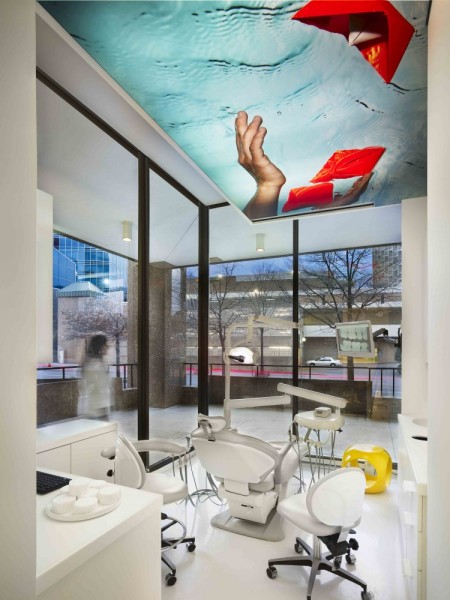 Уникальный стоматологический кабинет, недавно открывшийся в Арлингтоне (Вирджиния, США), стремится погрузить своих посетителей в сюрреалистическую реальность. Яркие фрагменты с неожиданными изображениями на фоне стильной минималистской обстановки ничем не выдают функции помещения, отвлекая посетителей от цели визита и процесса лечения.