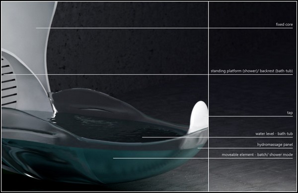 Со стороны не совсем очевидно, как попадать внутрь Tulip Bathtub, когда она находится в режиме душевой кабинки. Но, если внимательно присмотреться к визуализациям проекта, созданным Пьотром Пыртеком, то можно увидеть, что стеклянная часть, находясь в вертикальном положении, может двигаться влево и вправо.